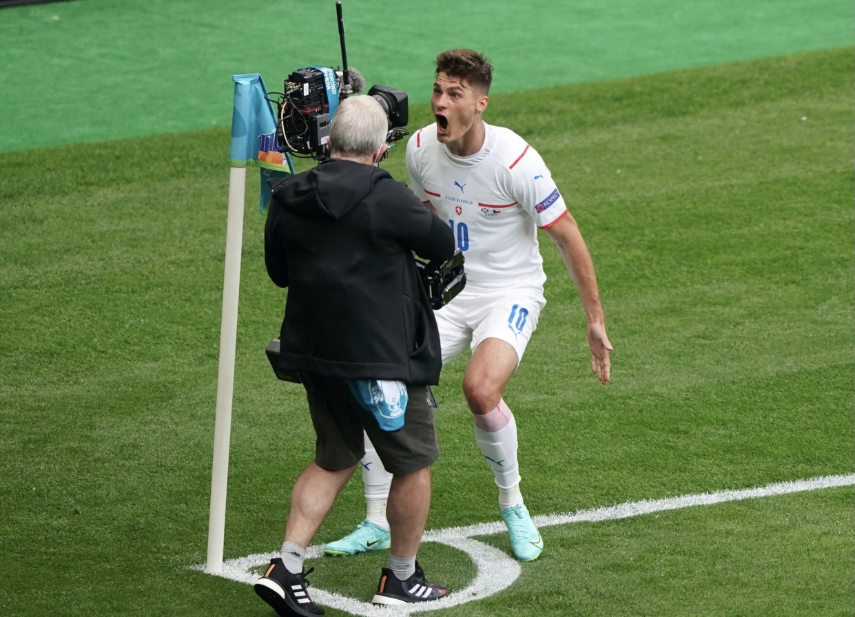 باتريك شيك سجل هدف التشيك الثاني في مرمى اسكتلندا، في الدقيقة 52 من المباراة التي جمعت بينهما على ملعب هامبدن بارك، في الجولة الأولى من المجموعة الرابعة ببطولة يورو 2020.